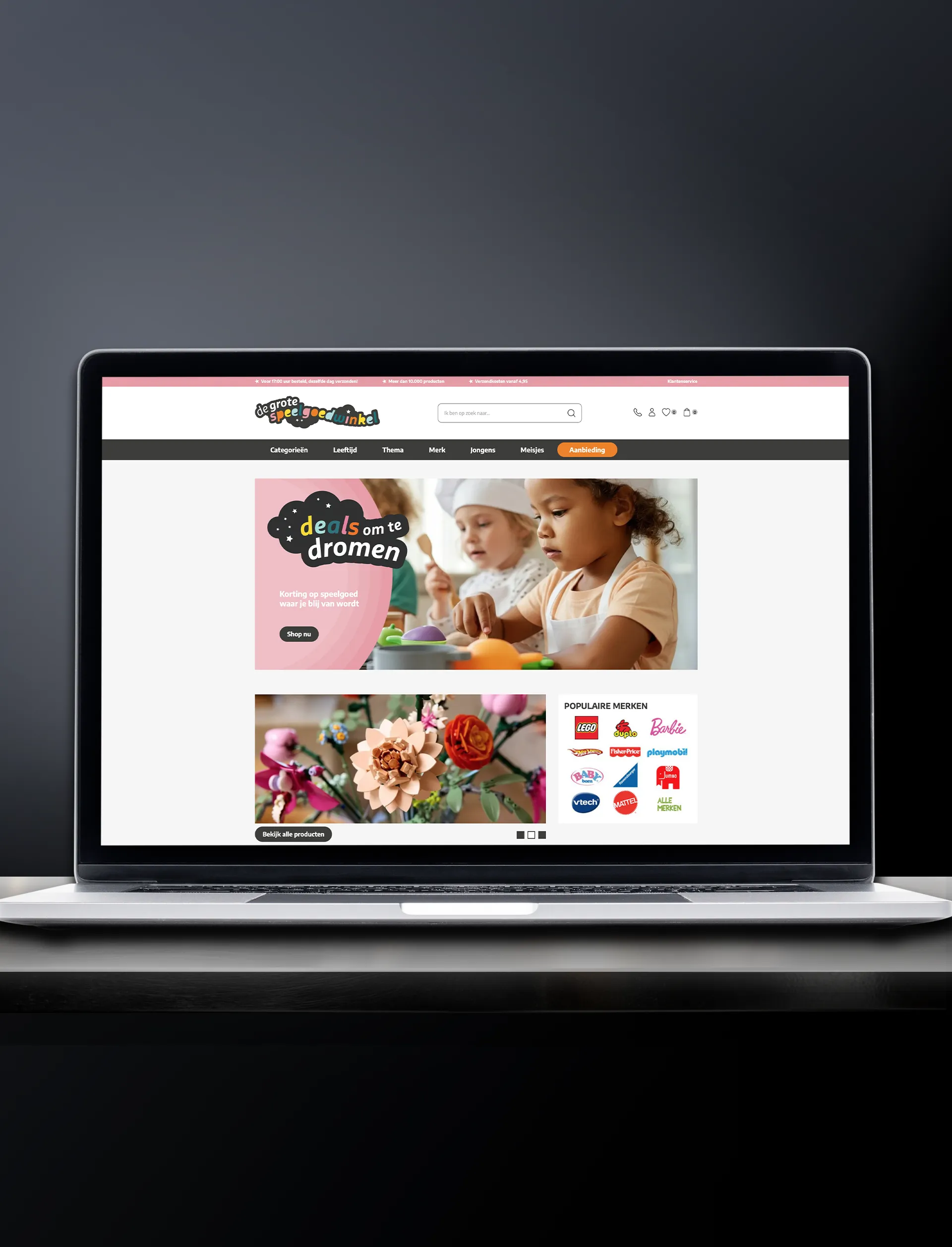 Vernieuwde look binnen het bestaande CMSVoor De Grote Speelgoedwinkel ontwierpen we een custommade website met een compleet vernieuwde look, terwijl alles binnen het bestaande CMS bleef draaien. Het resultaat: een frisse, gebruiksvriendelijke webshop die perfect past bij de kleurrijke huisstijl
