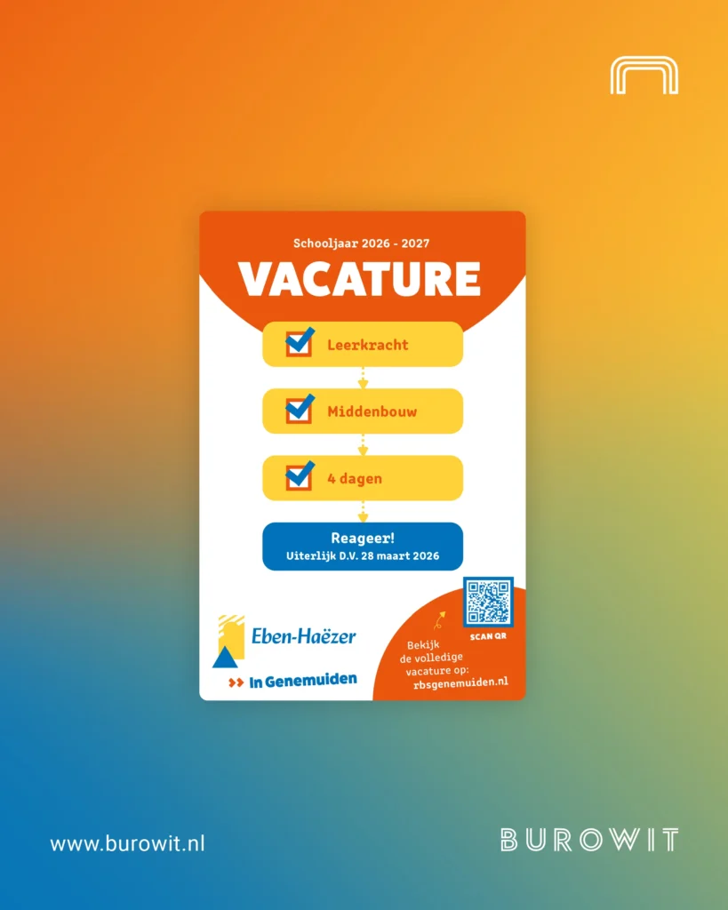 Soms laat een campagne precies zien wat goede communicatie kan doen. Voor de Rehobothschool en de Eben-Haëzerschool in Genemuiden gingen we aan de slag met het werven van nieuwe collega’s, met een helder doel: de vacatures zo snel mogelijk compleet invullen.